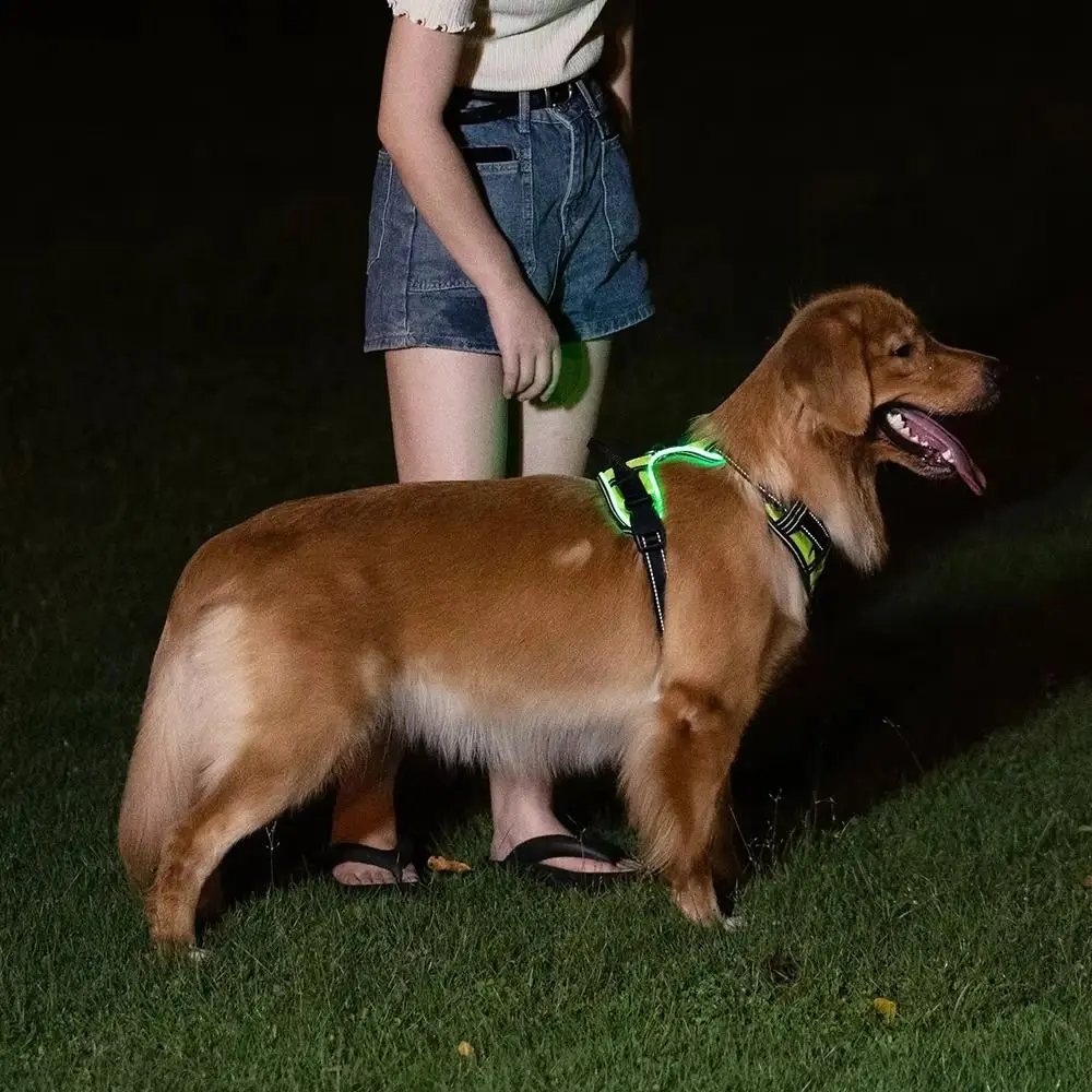 רתמה זוהרת LED לכלבים - רתמת חזה נטענת לטיולי לילה בטוחים
